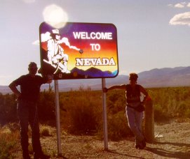 Nevada State Line, on Hwy. 50. There was a car coming from both directions at the same time, it must have been rush hour. Stateline, NV was across the street and down 50 yards. This was the last place to stay for the night before Ely, we went for Ely. |